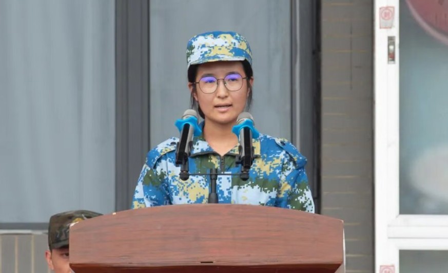 会计学院数智会计专业2025级新生孙康雅作为军训优秀学员代表发言。她围绕“蜕变、锤炼、坚持、感恩”四个关键词,分享了军训的收获与感悟。她谈到军训带来了脱胎换骨的蜕变,使同学们从稚气未脱的少年成长为目光坚定的大学生;通过严格的训练锤炼了体魄与意志,唤醒了责任意识;通过成百上千次重复练习,深刻体会到坚持的意义,突破了自我极限;最后,她代表全体新生表达了对校领导、教官和老师们深深的感恩之情。她表示将带着军训收获的宝贵品质,以坚韧迎接未来挑战,珍惜时光,为青春梦想扬帆远航。