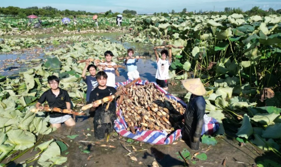 故事的起点,是2024年11月的一片藕塘。团队成员洪磊跟着父辈下田,双脚陷进没脚踝的淤泥里,看着长辈们弯腰摸藕、浑身沾满泥水的模样,心里又酸又急:“收藕只能靠人工硬扛吗?就不能造台机器帮大家省点力?”