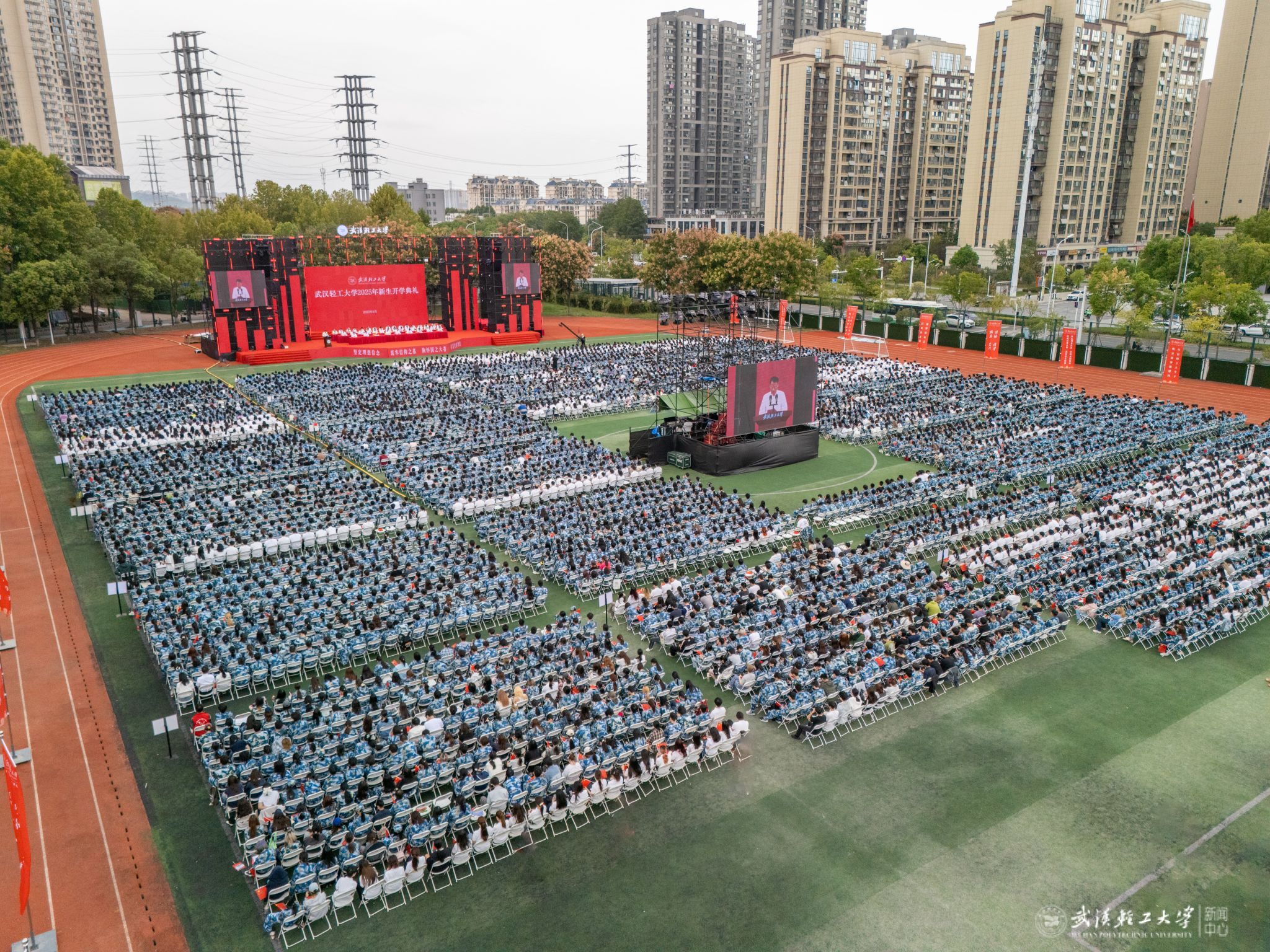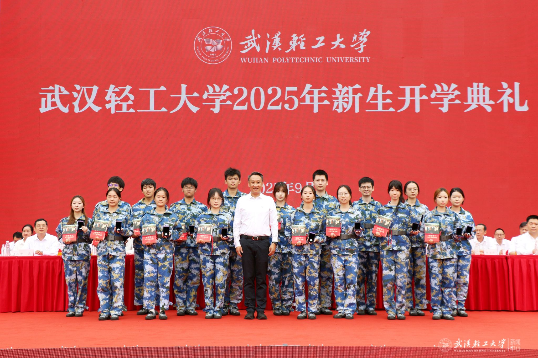 金秋筑梦绘华章,青春扬帆启新程。9月29日上午,武汉轻工大学2025级新生开学典礼在金银湖校区田径运动场隆重举行。来自五湖四海的6600余名本科生、研究生及留学生新生汇聚于此,共同佩戴上“轻工大人”的精神徽章,开启求知探索的人生新篇。