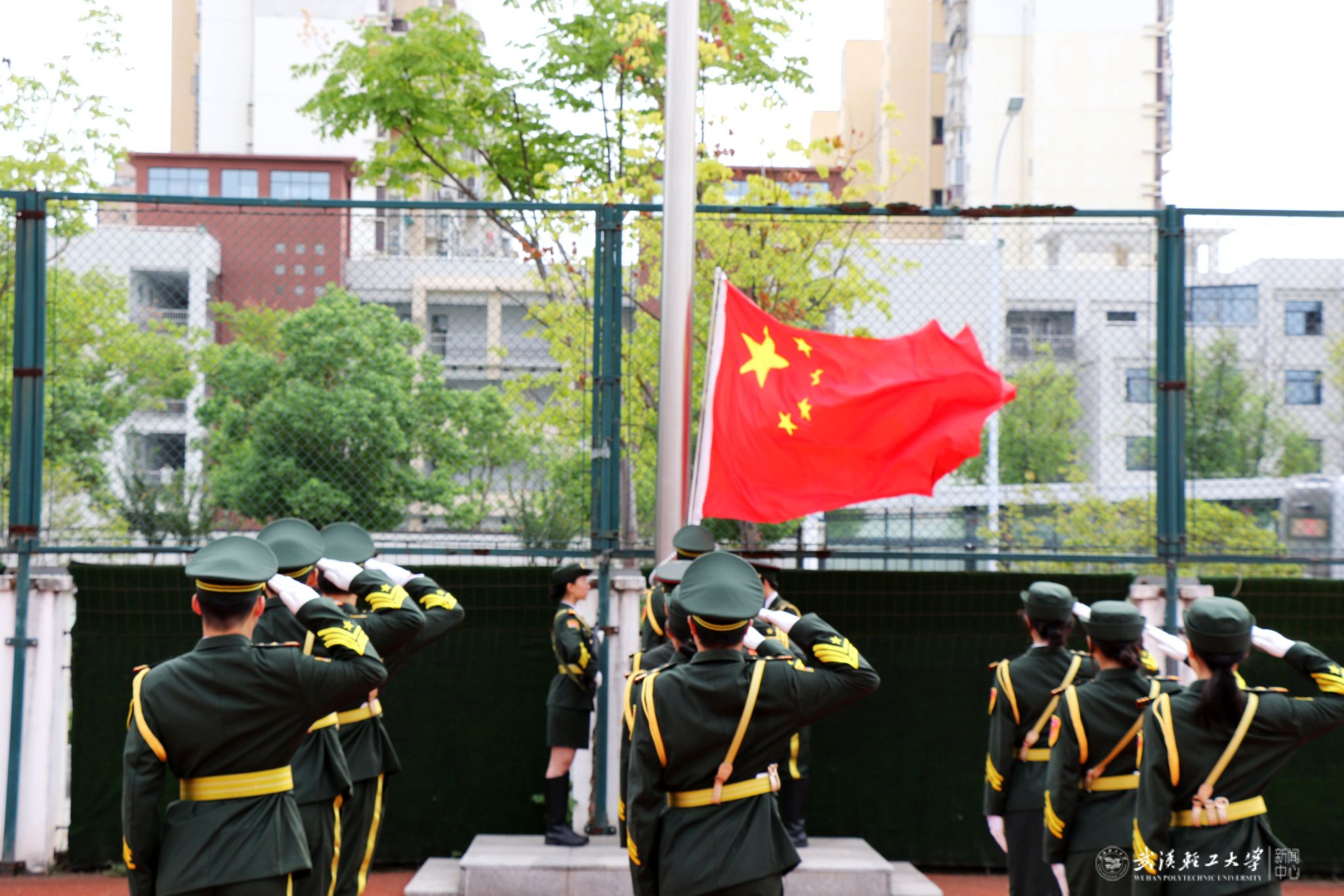 在庄严的升国旗仪式中,典礼拉开帷幕。