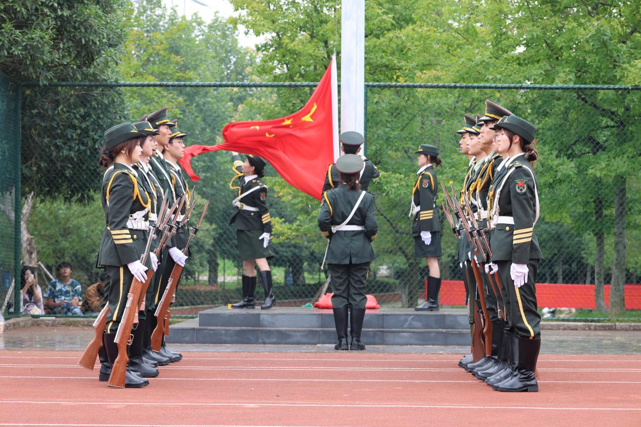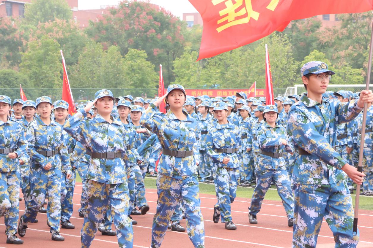 大会在激昂的升国旗仪式中开始。随后的军训成果汇报环节将现场气氛推向高潮。军体拳方阵动作精准,气势如虹;49个受阅方阵身着戎装,迈着铿锵有力的步伐依次通过主席台,口号声响彻云霄。集体合唱《歌唱祖国》深情献礼国庆,展现了新一代学子的昂扬斗志。