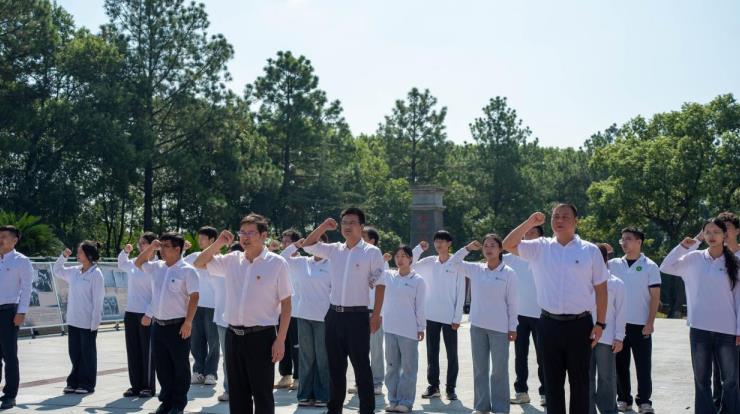 在宣誓广场,师生们重温了入党誓词,进一步坚定了理想信念。随后,师生们前往烈士墓前扫墓,通过清扫墓园、敬献鲜花和鞠躬致敬等方式,表达了对革命先烈的深切缅怀和崇高敬意。