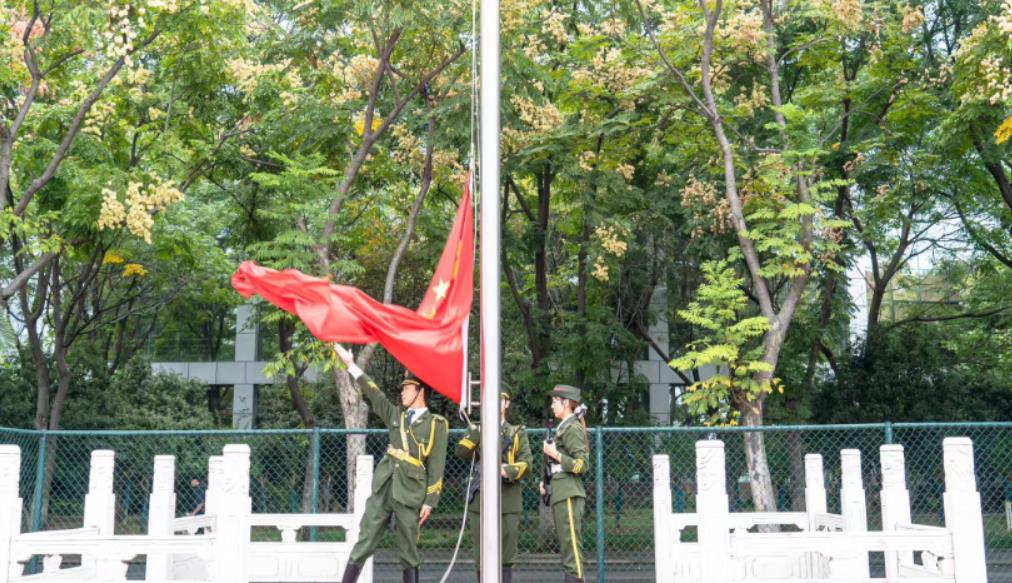 武汉工商学院举行国庆升旗仪式 献礼新中国76周年华诞
