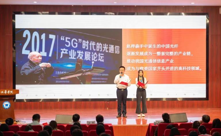 “他为我们创造的那道改变历史的光,将一直照耀着他深爱的这片土地。致敬赵梓森院士!”文华师生表演的《“中国光纤之父”赵梓森》,用生动的故事形式再现了这位科学家为中国光纤通信事业贡献毕生心血的感人事迹,致敬他为我们带来的那束光。
