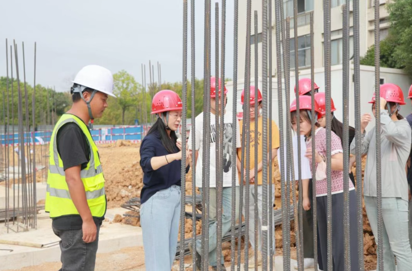 “以往去校外工地参观,往往受限于安全距离和工程进度,学生只能‘远观’;这次学校新建教学楼,施工场地就在‘身边’,这是把‘课本’变成‘实景’的绝佳机会!”。程红艳老师表示,此次教学结合土方开挖施工方案,从工艺流程、安全规范、技术难点三个维度展开。学生们围绕“基坑开挖的时空效应”“机械作业的安全距离控制”等问题展开热烈讨论。土方开挖、边坡防护、基础钢筋绑扎等施工场景,成为生动立体的“活教材”。