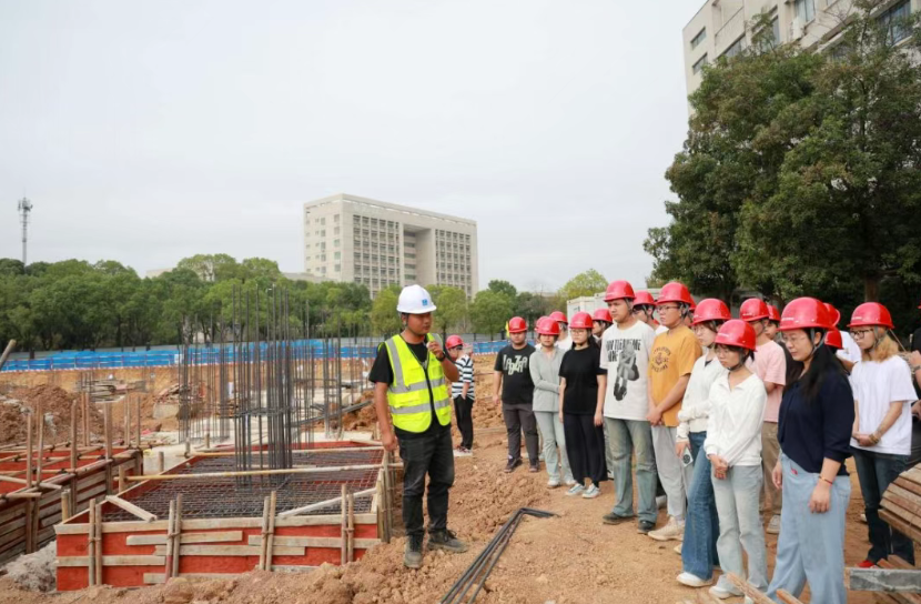 10月11日,湖北城市建设职业技术学院教学楼施工现场迎来了一批特殊的“学习者”——建筑工程学院教师程红艳带领学生现场教学土方开挖、基础工程施工技术。本次教学,特邀中建三局项目生产经理吏善伟作为企业导师联合授课。无人挖掘机等智能建造设备的亮相让课堂充满科技感,为学生带来沉浸式工程实践体验。