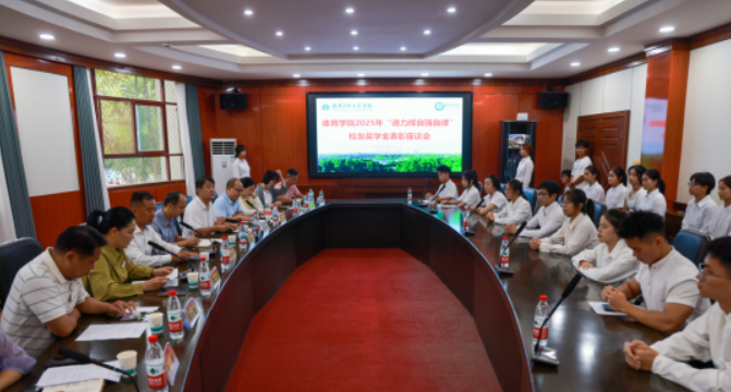 座谈会上举行捐赠和颁奖仪式。校党委副书记、副校长、校友总会会长孔德文代表学校接受周德权校友的捐赠,并向他颁发捐赠证书。随后,孔德文与周德权共同为体育学院学生陈小小颁发“特殊奖学金”及1万元奖金;党委常委、校长助理余仕良,体育学院党总支书记、副院长李付宝,校友办副主任宋娟分别为王华丽等20名同学颁发“优秀奖学金”及2000元奖金。
