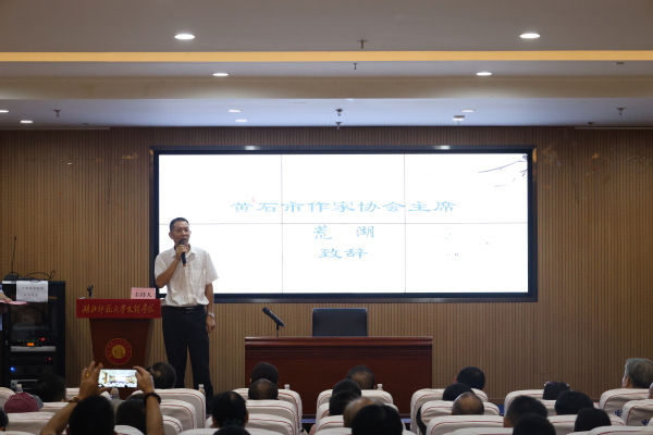 10月11日下午,中国作家黄石文化论坛磁湖诗歌讲座在湖北师范大学文理学院图书馆开讲。黄石市政协副主席汪岚,市作家协会主席荒湖,学校领导李咏成、许光、王红兵出席。近200名诗歌爱好者共赴这场诗歌盛筵。
