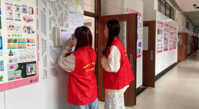面对部分班级存在的上课迟到、玩手机、缺勤等问题,先锋队率先扛起“督学责任”,成立“党员学风督导队”,建立起“定点分包+随机巡查”的双重监督机制。88名党员每两人认领1个班级,每周固定2次提前10分钟到教室清点人数,记录出勤情况;随机1次在课堂中观察学生听课状态,重点关注是否有睡觉、玩手机等影响课堂秩序的行为,并详细填写《学风督导台账》,每周向学院反馈数据,形成“发现问题——反馈问题——解决问题”的闭环。