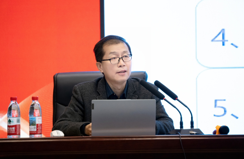 杜永成以《走好新时代科技自立自强之路》为题,带领大家系统学习领会习近平总书记关于科技创新的重要论述,围绕“世界科技竞争日趋激烈”“我国科技机遇挑战共存”和“加快科技自立自强步伐”三个方面,通过丰富的事例阐述了高水平科技自立自强的重大意义及其深刻的历史逻辑、鲜明的时代特征和清晰的实践导向,探讨了未来我们如何走好新时代具有中国特色的科技自立自强之路。