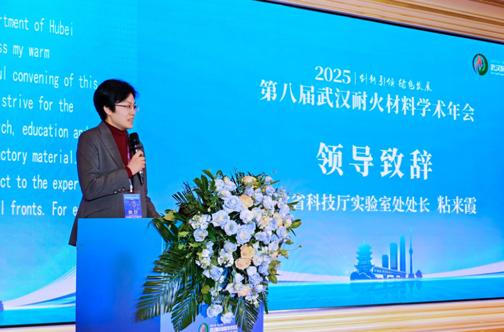 湖北省科技厅实验处处长粘来霞在致辞中表示,耐火材料是高温工业与国防军工等国家命脉产业的关键基础,希望会议凝聚智慧,推动产学研用协同,助力实现高温工业绿色可持续发展。