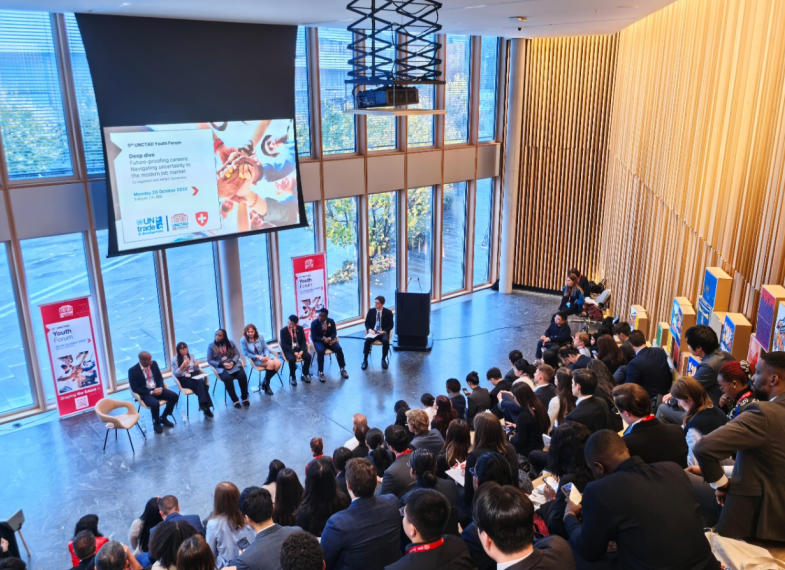 在联合国贸易与发展会议青年论坛上,滕吴依格深入参与了“绿色崛起——青年共建可持续未来”“经济不稳定下的生计再想象”“为未来赋能的职业发展”三场深度研讨会,并在“30分钟制定商业计划”实战演练中,与来自世界各地的青年代表积极交流、碰撞思想。他们以流利的英语表达能力、开阔的国际视野和富有建设性的见解,在探讨全球性挑战的解决方案时,贡献了独特的“中国智慧”,赢得了与会者的广泛赞誉。