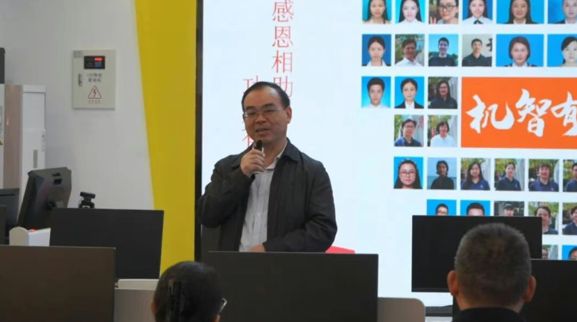 参观结束后,全体人员齐聚智能制造虚拟仿真实训中心,听取机电工程学院院长熊巍的成果汇报。他从党建、校企合作、师资队伍、实训平台、育人体系五个维度展开,重点介绍学院多元校企育人模式的四大特色:与奥的斯合作推行现代学徒制实景培养,携手小鹏汽车开展订单班定向培养,联合华星光电创新“三段贯通五级跃迁”现场工程师培养模式,联动汇川技术打造“汇英班”专项集训模式。在这些模式的赋能下,学生深度融入企业培训内容、考核标准与职业素养要求,实现从“懒散青年”到“奋斗青年”的蜕变,就业竞争力与职业发展潜力显著提升。
