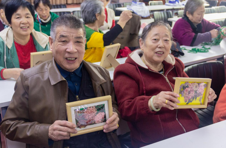 手工环节意犹未尽,文艺表演又掀起新的高潮。在同学们的歌舞表演之后,两位曾在合唱团工作过的老人自告奋勇,携手高歌《没有共产党就没有新中国》,铿锵有力的歌声感染了全场,不少老人轻声跟唱,眼中泛起激动的泪光。紧接着,同学们带来的重阳诗词朗诵更添情怀,当毛主席的《采桑子·重阳》中“岁岁重阳,今又重阳,战地黄花分外香”被铿锵诵出,不少老人凝神倾听,仿佛被带回那段难忘的岁月。