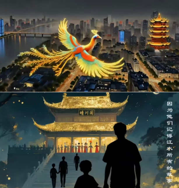 湖北赛区一等奖作品《偶韵晴川,古今江汉》以武汉文化地标“晴川阁”为叙事核心,创新运用AIGC技术,将国家级非物质文化遗产“武汉杖头木偶戏”与大禹治水传说、现代抗疫精神有机串联,呈现出一幅跨越千年的江城人文画卷。