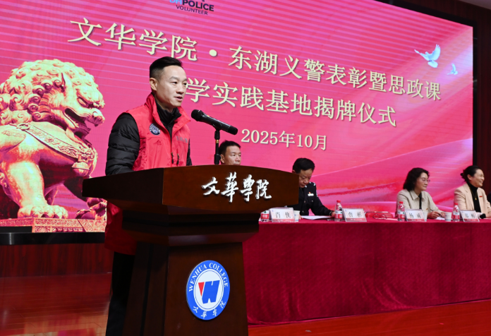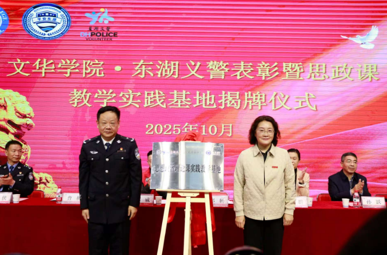10月30日,文华学院“思政课实践教学基地”揭牌仪式举行。奥运冠军、东湖义警形象大使杨威亲临现场,与武汉市公安局东湖生态旅游风景区分局领导干部及文华学院校领导、师生代表齐聚一堂,以“弘扬枫桥经验,青春守护平安”为核心,见证校地协同育人新起点,为平安东湖建设注入强劲青春动能。