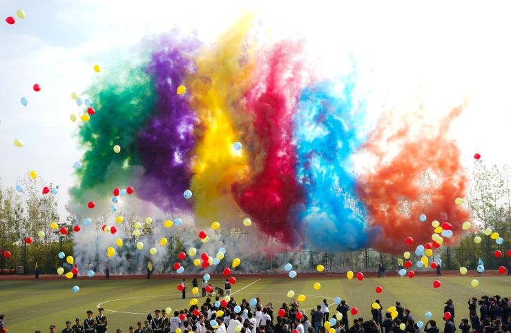 随后,运动员代表和裁判员代表先后上台宣誓,承诺将恪守体育精神,公正执裁,公平竞赛。最后,校长马必学宣布:“2025年秋季运动会正式开始!”顿时,绚丽的烟幕绽放,五彩气球腾空而起,带着全校师生的美好祝愿飘向远方,运动场瞬间变成欢乐的海洋。(通讯员:陆慧 郑王晴 全旨昕 刘梦瑶 周毅淇 沈思喆 莫灵杰 李莹)