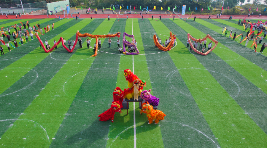 壮观!武汉工商学院运动会上300余名学生共同演绎舞龙舞狮