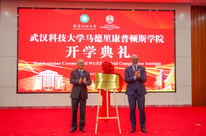 马德里康普顿斯大学是西班牙排名第一的综合性大学,于1990年在美国哈佛大学建立哈佛大学皇家康普顿斯学院。武汉科技大学马德里康普顿斯学院是其在国外的第2所学院,也是湖北省属高校首次与QS世界排名前200的顶尖大学成功牵手创办国际化合作办学机构。在开学典礼上,武汉科技大学党委书记倪红卫与华金·戈亚契·戈尼共同为“跨文化数智人文研究中心”揭牌,标志着两校的合作从人才培养的“育人”模式,拓展至联合科研的“双轮驱动”新格局。