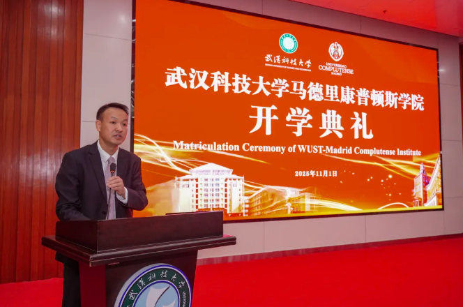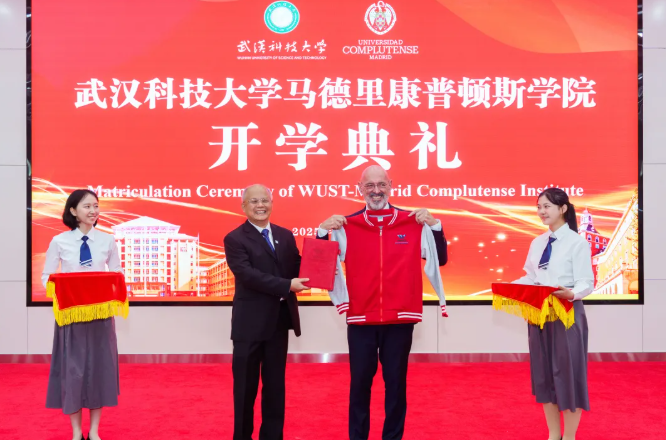 湖北省教育厅副厅长戴伟、武汉科技大学党委书记倪红卫、党委副书记、校长吕勇、西班牙马德里康普顿斯大学校长华金·戈亚契·戈尼等中西嘉宾出席典礼,典礼由武科大副校长董丽杰主持。