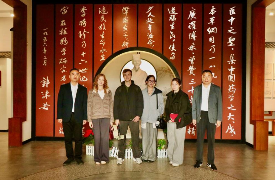 为弘扬李时珍精神,传承中华优秀传统医药文化,搭建中外文化合作交流桥梁,2025年10月31日,黄冈职业技术学院中药学专业学生与俄罗斯留学生代表,在医药学院党总支副书记陈胜红的带领下前往蕲春李时珍纪念馆、李时珍医药集团,开展了一场集文化溯源、专业实践与国际交流于一体的研学实践活动。
