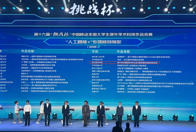 11月3日,第十九届“挑战杯”中国移动全国大学生课外学术科技作品竞赛终审决赛在南京大学圆满落幕。武汉音乐学院参赛项目“基于动作捕捉技术的交互式数智编钟演奏体验系统”在“人工智能+”专项赛(应用赛)中荣获特等奖,实现了学校在该项赛事上的历史性突破。
