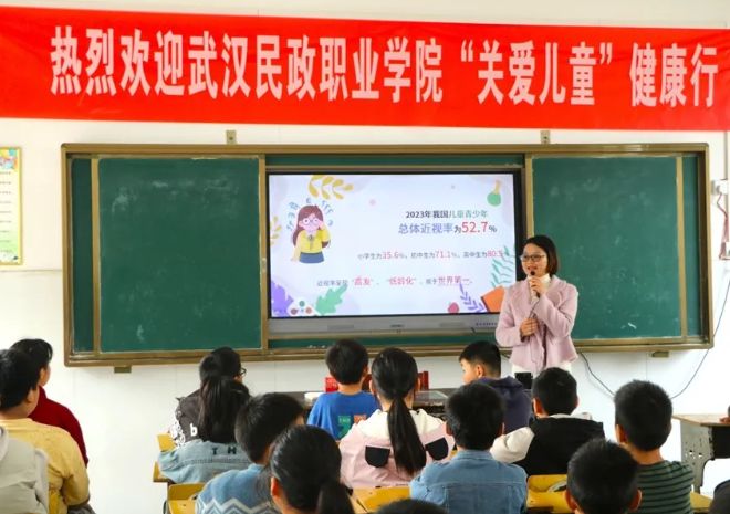上午,余长畈小学的课堂热闹非凡。全国轻工行业技术能手李慧老师以“护眼小卫士”为主题,运用动画演示、互动问答等生动方式,为50名小学生普及科学用眼知识,让孩子们深刻认识到眼睛也会“疲劳”,引导他们养成良好用眼习惯。叶娟老师现场传授伤口包扎、海姆立克急救法,大学生志愿者分组指导实操,孩子们积极参与,在实践中掌握实用技能。红歌串烧环节,志愿者与孩子们共同唱响《我和我的祖国》,爱国情怀在稚嫩的歌声中悄然扎根。