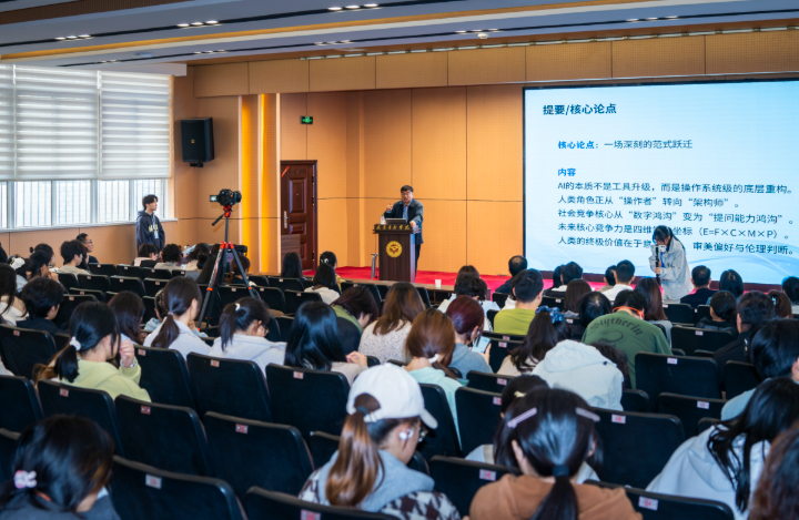 10月31日上午,著名新闻传播学家、教育部长江学者特聘教授喻国明做客武昌首义学院南湖讲坛,为师生作了题为“范式跃迁:AI时代获取未来的密钥”的学术讲座。