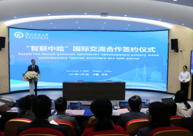 金秋时节,硕果可期。11月1日,哈萨克斯坦教育部直属机构“TALAP”总裁桑扎尔·塔特别科夫率哈萨克斯坦10所高校校长团组访问湖北开放大学并参加“智联中哈”国际交流合作签约仪式。校长陈志祥、该校相关部门及学院负责人出席签约仪式。仪式由副校长汤春来教授主持。