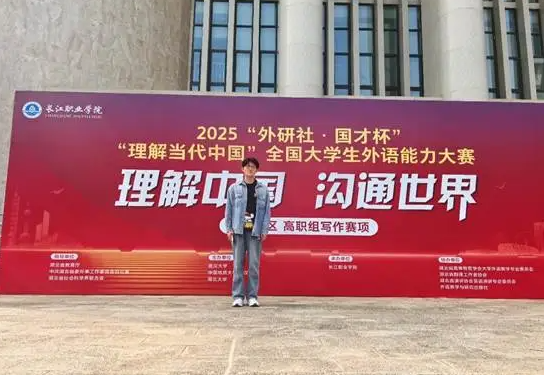 11月2日,2025“外研社·国才杯”“理解当代中国”全国大学生外语能力大赛(湖北赛区)高职组比赛在武汉圆满收官。武汉民政职业学院公共课部选派的4支参赛队伍表现优异,财经旅游学院邵陈润熙同学荣获演讲赛项银奖,社会管理学院郝剑锋同学荣获写作赛项铜奖,充分展现了该校外语教学改革的丰硕成果与学子风采。