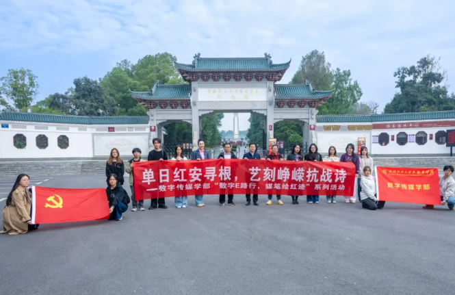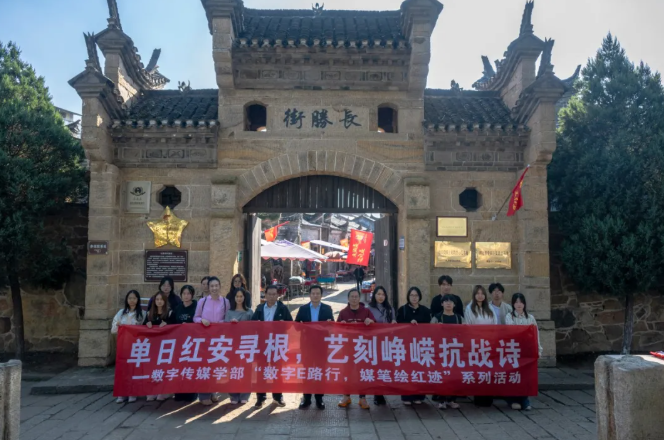 数字传媒学部主任叶佑天说,一条街就是一座露天党史馆,每一块砖都在说话,我们要做的,是让它们“活”在青年人的镜头里、画板上。为此,全体师生创新开展“红色任务打卡”活动:分组寻找“红军标语”“革命旧址铭牌”,与党旗同框合影,用光影“拓印”抗战记忆。大家边拍边记,把斑驳的字迹化作手绘素材,为后续系列作品积累灵感。