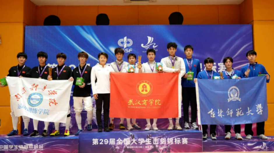 在第29届全国大学生击剑锦标赛中,武汉商学院击剑队斩获男子花剑个人赛与团体赛“双料”冠军。