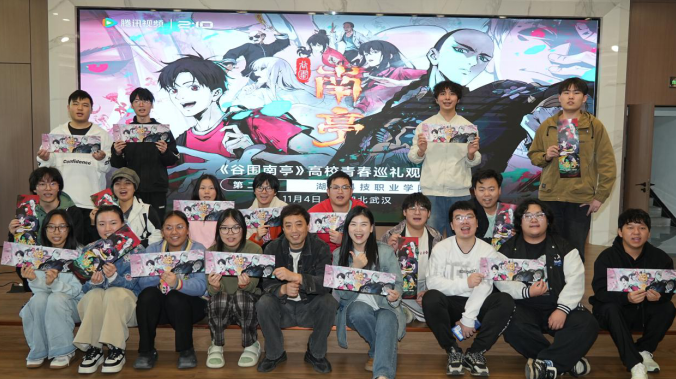 当行业瞩目的动漫作品与校园课堂惊喜联动,会碰撞出怎样的火花?近日,随着爆款动画《谷围南亭》在平台热映,其背后的“00后”创作团队成员——来自湖北科技职业学院艺术创意学院动漫设计专业与两点十分公司共建企业学院的39名学生,以项目制作组成员的身份荣耀返校,带来了一场“沉浸式”项目宣讲会,引爆校园热议。