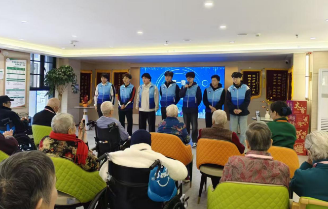 在文艺表演环节,志愿者们带来了精心编排的节目。歌曲《夕阳红》旋律悠扬,唱出了对老人们的美好祝福;朗诵《重阳颂》情感真挚,传递着对传统节日的敬意。志愿者们还与老人们共同合唱经典老歌,熟悉的旋律勾起了他们的美好回忆,现场掌声与笑声不断。此外,志愿者们还组织老人们开展了“击鼓传花”、猜灯谜等趣味游戏,老人们积极参与,脸上洋溢着幸福的笑容。