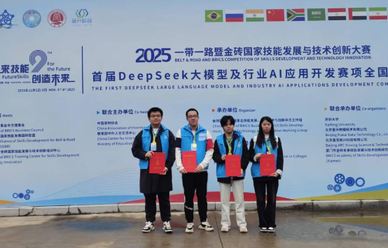 11月6日至8日,2025年一带一路暨金砖国家技能发展与技术创新大赛之首届DeepSeek大模型及行业AI应用开发赛项全国决赛在河南开封大学举行,湖北交通职业技术学院派出的两支参赛队喜获两个一等奖,同时学校荣获最佳组织奖。