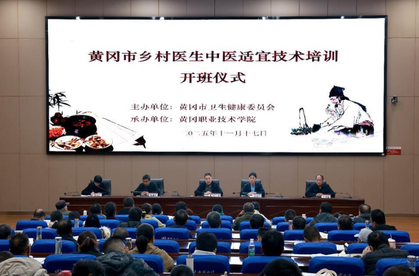11月17日上午,黄冈市乡村医生中医适宜技术培训在黄冈职业技术学院顺利启动。校党委副书记郑柏松、黄冈市计划生育协会会长张凯、黄冈市卫健委中医药综合科科长陈建文、医药学院党总支书记丁海峰出席开班仪式,与来自全市基层医疗机构的近200名乡村医生共同参加。仪式由医药学院院长夏瑾燕主持。