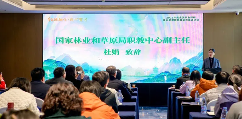 国家林业和草原局职业教育研究中心副主任杜娟在致辞中强调,课程思政是落实为党育人、为国育才政治任务的关键抓手,林业职业院校应主动担当时代使命,将习近平生态文明思想、工匠精神、行业法规等思政元素精准融入教学全过程,培养更多“知林爱林、强林兴林”的高素质有担当的林业技术技能人才。