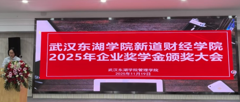 11月19日下午3时,武汉东湖学院新道财经学院2025年企业奖学金颁奖大会在教二111室举行。本次大会表彰了53名在德、智、体、美、劳等方面表现优异的学生。武汉东湖学院副校长许承光、管理学院院长胡柳波、新道科技湖北分公司总经理毛恒博、教务处副处长刘莉、湖北分公司教学服务总监熊福龙、校企合作总监郑云云出席了本次大会。本次大会由管理学院副院长白月华主持。