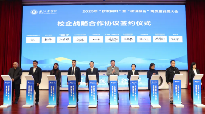 11月22日,2025年“校友回归”暨“校城融合”高质量发展大会在武汉商学院南区大学生中心召开。
