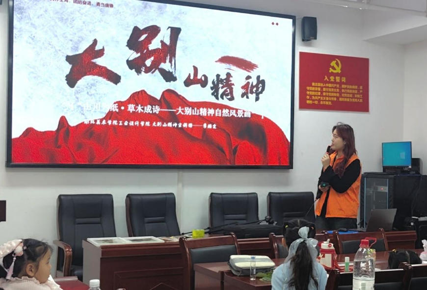 湖北美术学院组建以工业设计学院师生为主体的大别山精神研学实践团队,坚持在研学实践中感悟红色文化精神,研学实践团走访七里坪革命旧址、黄麻起义与鄂豫皖苏区纪念园、亮剑精神体验馆等,在“二十八年红旗不倒”的红色烙印中,通过口述史采集、文物测绘、民情调研等,将“坚守信念、紧跟党走,顾全大局、团结奋斗,勇当前锋、不胜不休”的大别山精神转化为鲜活教材。团队以“理论宣讲+故事串讲+艺术鉴赏+手工课堂”的模式,走进武汉江夏区文化路小学、洪山区井岗山小学等10余所中小学校,开展大别山精神“大中小学思政一体化”系列宣讲。宣讲员手持原创连环画,讲述革命先辈的传奇故事,在孩子们心中种下“红色种子”。截至目前,已开展17场宣讲活动,活动被荆楚网、中国教育在线等多家媒体报道,线上线下覆盖7000余人次。