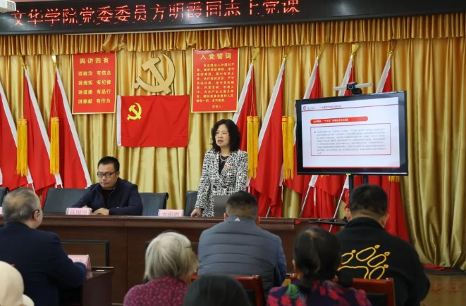 校党委委员、党委组织部部长方明霞同志讲授专题党课,系统领学党的二十届四中全会精神。她围绕“十四五”时期我国发展取得的重大成就、“十五五”时期经济社会发展的指导思想、重大原则、主要目标与重点任务等方面进行全面解读,强调全体党员要不断提升政治判断力、政治领悟力、政治执行力,切实把学习成果转化为推动乡村振兴的实际行动,在服务基层中展现担当作为。