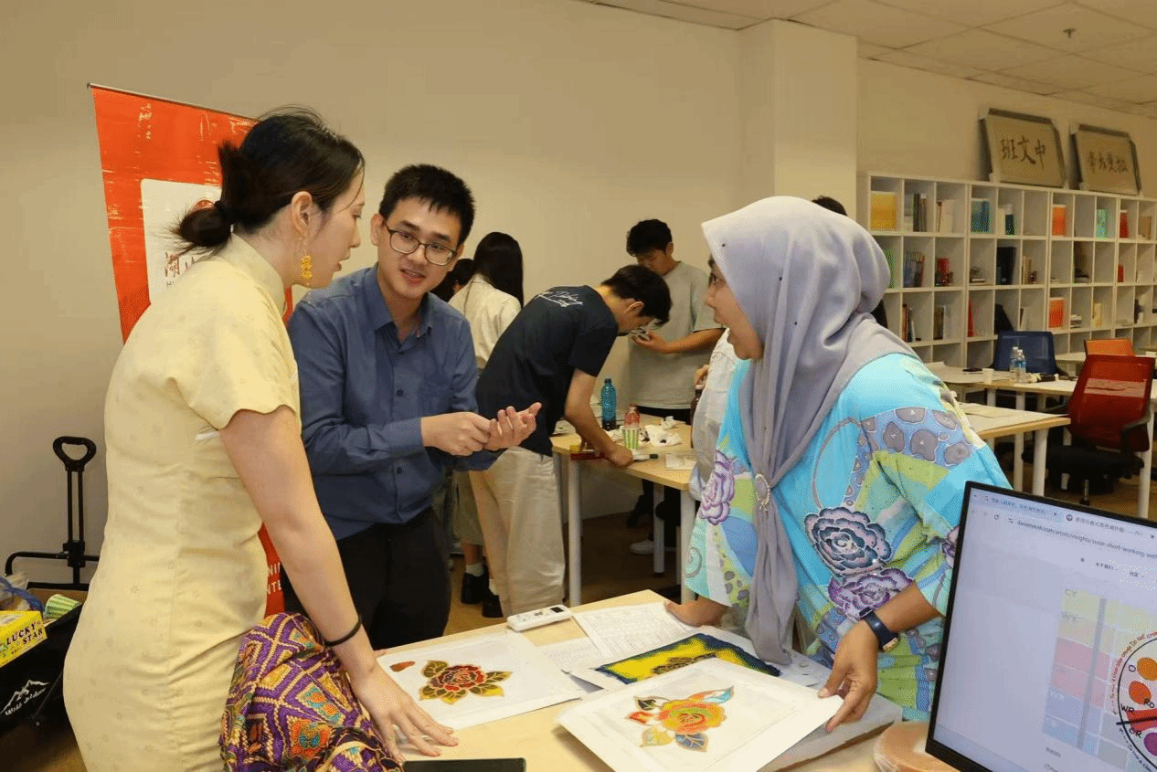 学生与拉曼大学教师交流巴迪蜡染工艺