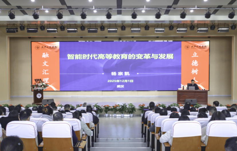 为顺应人工智能时代教育发展浪潮,深化AI技术与教育教学的深度融合,推动学校教育教学高质量发展,2025年12月1日,武汉文理学院开展“AI技术赋能教学创新”专题培训。全体校领导、全体中层干部、副科级以上行政管理人员及教学管理人员、教师代表齐聚现场,共同聆听行业权威专家的前沿分享。