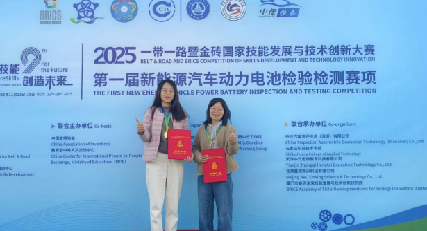 汽车学院副院长金碧辉表示,本次获奖,不仅是对两位老师专业能力的肯定,更是学院长期坚持“以赛促教、以赛促研”教学改革成果的集中体现。近年来,学院顺应新能源汽车产业智能化、电动化趋势,不断优化课程体系,将动力电池检测等前沿技术融入教学,并通过校企共建、项目实战等方式,持续提升师资队伍的实践教学与技术创新能力。未来,学校将继续深化“岗课赛证”融通育人,将大赛经验转化为教学资源,为行业培养更多高技能人才。(通讯员:穆雨 唐琼)