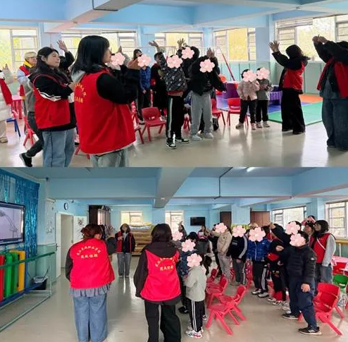 在节奏明快的音乐中,活动正式拉开帷幕。队员们带领孩子们跳起简单易学的律动,通过拍手、跺脚等动作,引导他们感知节奏、舒展身体。队员们耐心陪伴,细心鼓励,孩子们从羞涩到投入,渐渐跟随音乐尽情舞动,活动室里满是欢声笑语。