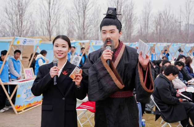 活动巧妙依托校园枫林景观,营造出“观景悟法、境中明理”的独特氛围。深受同学们喜爱的普法IP“喜哥”亲临现场,以学长姿态亲切开讲。他用“拉家常”般的生动语言,将严谨的宪法逻辑融入日常话语,在轻松互动中传递宪法的精神内核。