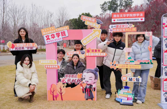 枫林层染,法治之光温暖校园。12月4日,第十二个国家宪法日当天,“喜哥普法‘宪’照枫林”网络普法暨“宪法宣传周”活动在文华学院热烈开展。近百名师生踊跃参与,沉浸式互动中,宪法知识走出条文、融入校园实践,法治意识在体验中深植,打造出听得懂、能共鸣的校园普法活动。