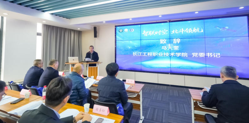长江工程职业技术学院党委书记马大奎在致辞中强调,面对北斗应用产业蓬勃发展的机遇,共同体须以更高站位、更实举措推动建设迈上新台阶。他提出三点展望:一是强化育人载体,通过共建教学资源、实训基地、双师队伍等,实现人才培养与产业需求精准对接;二是搭建服务平台,建设产教供需对接数字化平台,推动“政行企校社”资源高效匹配与成果转化;三是完善合作机制,进一步优化运行、决策与利益共享机制,构建“资源共享、风险共担、成果共赢”的发展共同体。