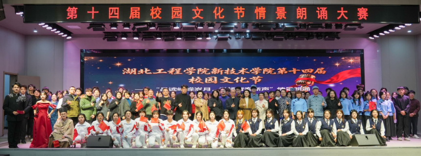为纪念中国人民抗日战争暨世界反法西斯战争胜利80周年,深入推进沉浸式思政教育实践,12月4日,湖北工程学院新技术学院第十四届校园文化节“品读峥嵘岁月激扬青春新声”情景朗诵大赛在美术楼报告厅举行。