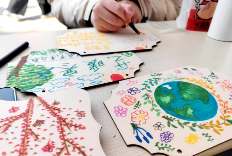 活动紧扣“生态保护”主题,寓教于乐,设置多个互动环节。在生态保护知识问答区,同学们踊跃答题,答对三题即可参与抽奖,多肉植物、盲盒盆栽、树叶书签等礼品深受青睐;心愿板前,大家留下对环保的思考与寄语;树木科普牌绘制环节中,同学们一边了解校园树木的生态信息,一边用画笔勾勒心中的绿色,加深了对生态环境的亲近与认知。